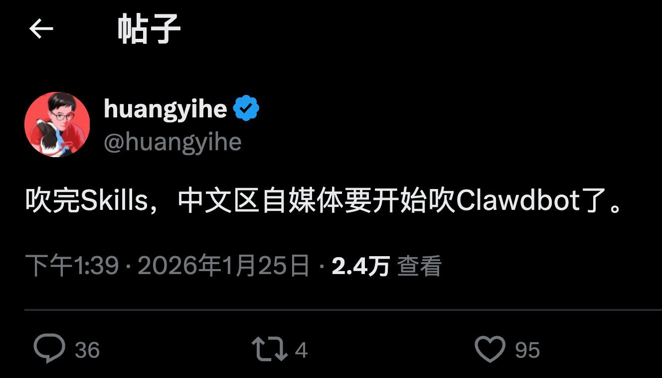 这次攻击的是营销号,该产品的名字叫 "ClawdBot" ---> "MoltBot" ---> "OpenClaw",logo是龙虾。不要他妈的到处说 "龙虾" 和 "养一只小龙虾" 了,可爱化、幼稚化、自我矮化、养宠物的高贵感,真的这buff拉满了,